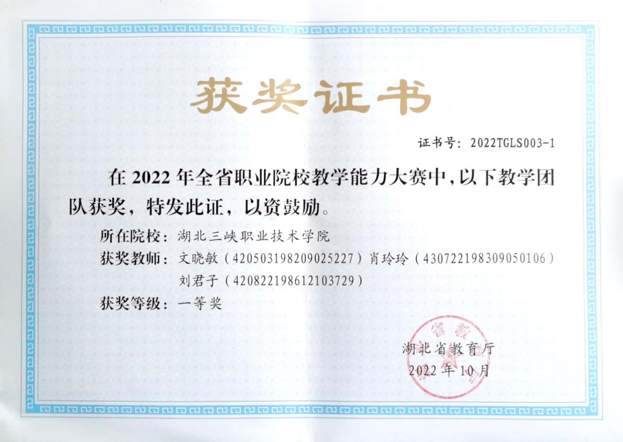 10 | 胡景蓉 | 湖北三峡职业技术学院优秀教师 | 优秀 | 2022.09 |