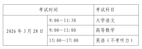 专业课考试(职业适应性或职业技能综合考查)于2026年4月25日举行,由各招生本科院校组织实施,具体时间及办法由各招生本科院校确定。