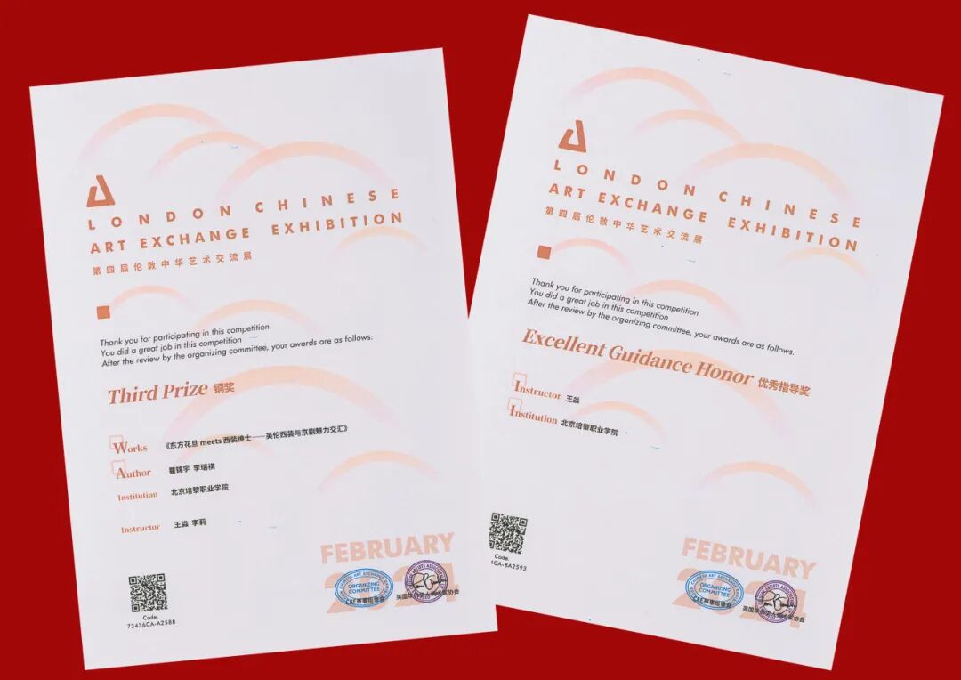 学生作品在 CAE伦敦中华艺术交流展中获得铜奖