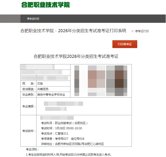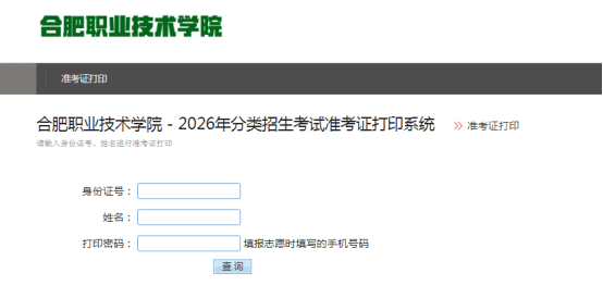 合肥职业技术学院2026年分类考试校考准考证打印流程