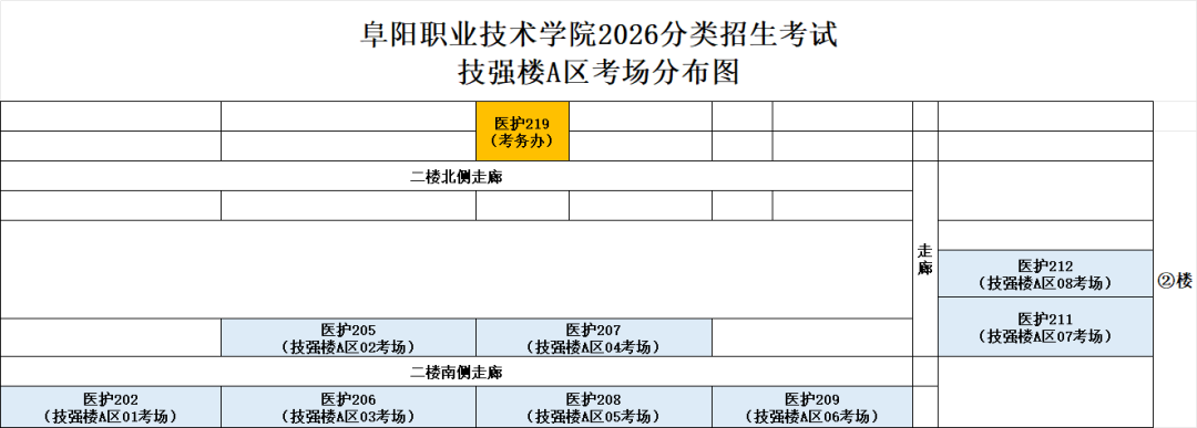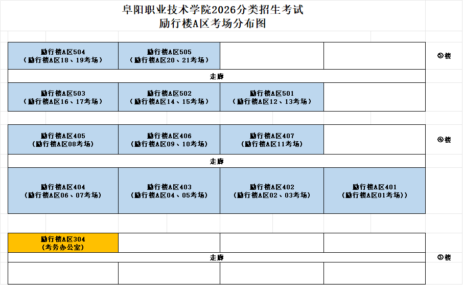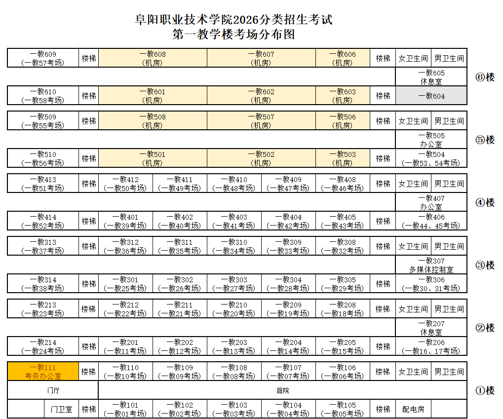 学校共设置3个考试区域,分别在第一教学楼(一教)、励行楼A区、技强搂A区(医护)。