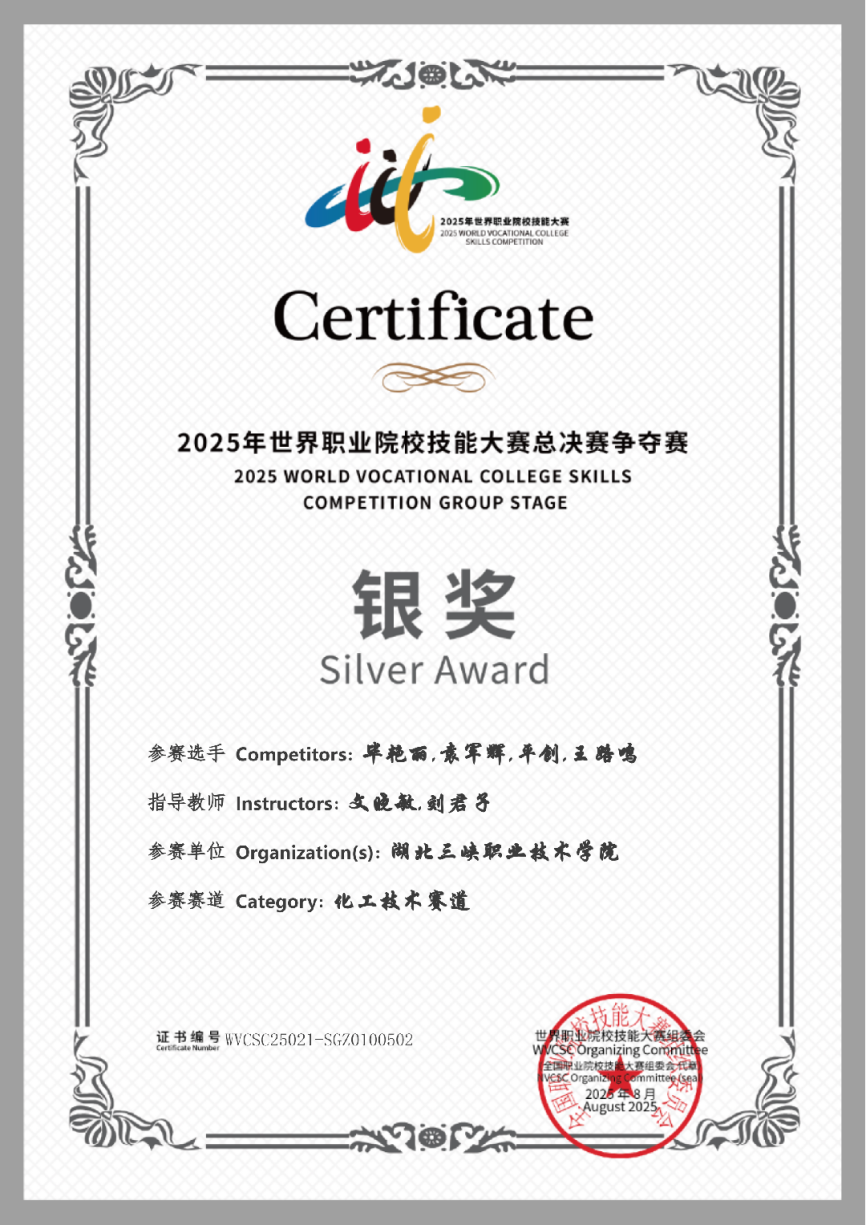6 | 毕艳丽等 | 世界职业院校技能大赛化工技术赛道 | 银奖 | 全国职业院校技能大赛组织委员会 | 2025 |
