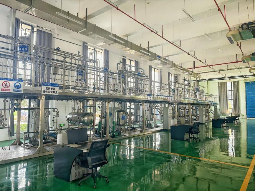 绿色化工智能制造产教融合实践中心:聚焦自动化生产流程,配备分析仪器、单元操作装置、过程控制及管道拆装等装置,共244个工位。可开展化学分析、单元操作、过程控制、设备维修等实训项目,还原真实生产环境。