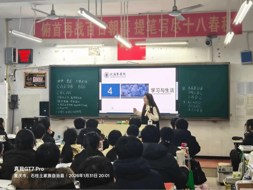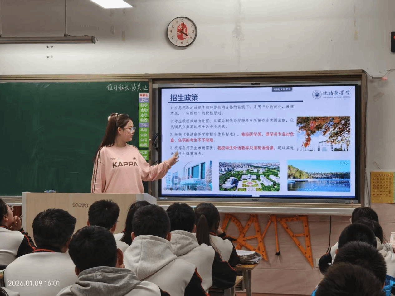 团队深入各个班级,通过播放沈阳医学院的宣传视频,让同学们对沈阳医学院的整体风貌有直观的感受。随后,借助PPT详细介绍学校的历史沿革、学科优势、师资力量、校园生活等内容,重点突出学校在医学领域的特色以及我所在的预防医学专业的实力。