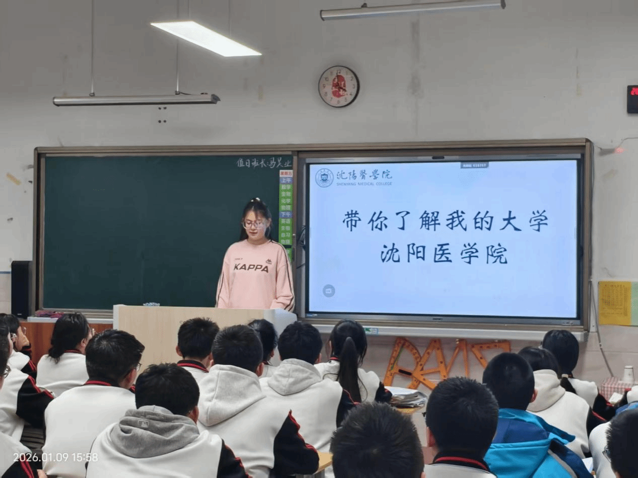 再次站在母校的讲台上,我不再是埋头刷题的学生,而是带着医学使命的分享者。看着台下一张张青涩却坚定的脸,我仿佛看到了无数个未来的医者,正从这里出发,向着救死扶伤的方向前行。这次活动让我深刻意识到,我们不仅是沈医的代言人,更是医学精神的传递者。未来,我会继续搭建母校与沈医的沟通桥梁,用自己的临床学习经历,让更多人看见医学的魅力,吸引更多有理想、有担当的青年加入医学事业,为守护生命健康注入新生力量。