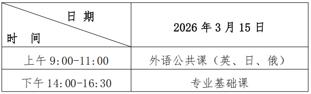 2026年专升本考试科目共设两科,外语公共课(英、日、俄)分值为100分;专业基础课分值为200分,总分为300分。
