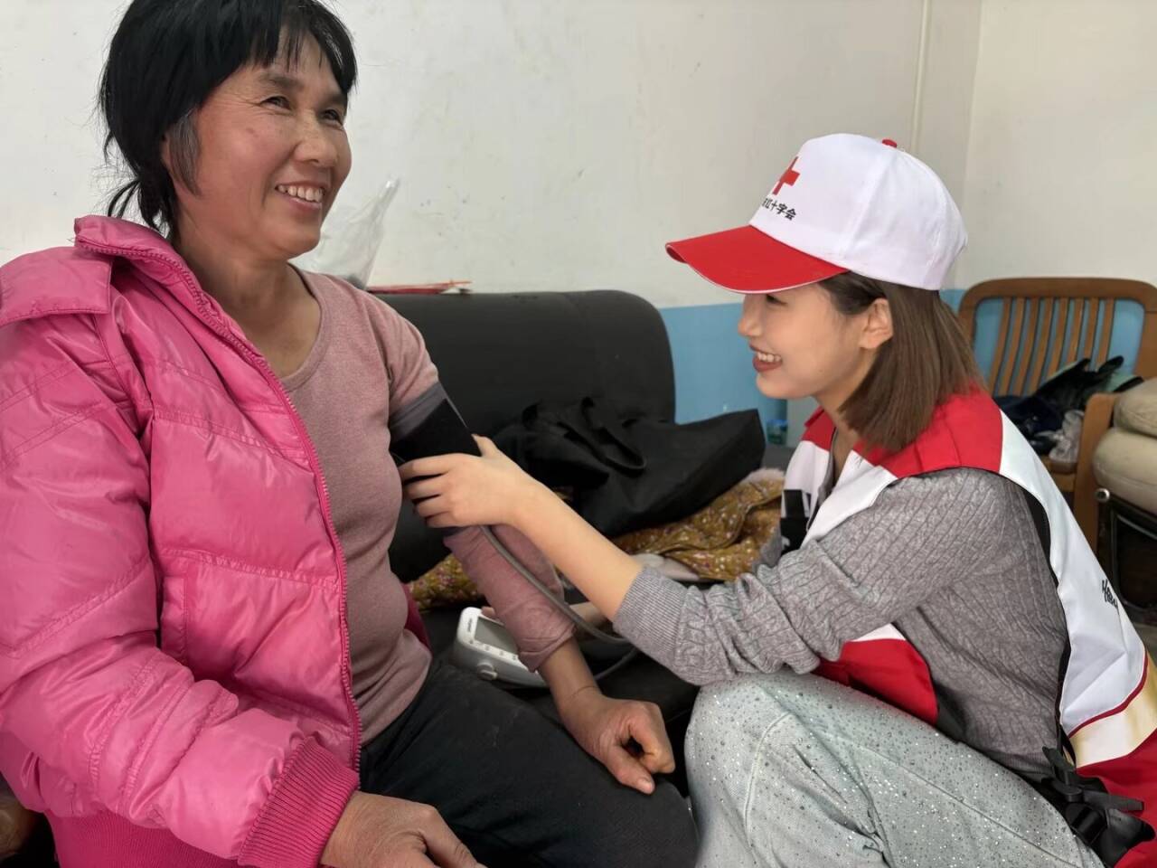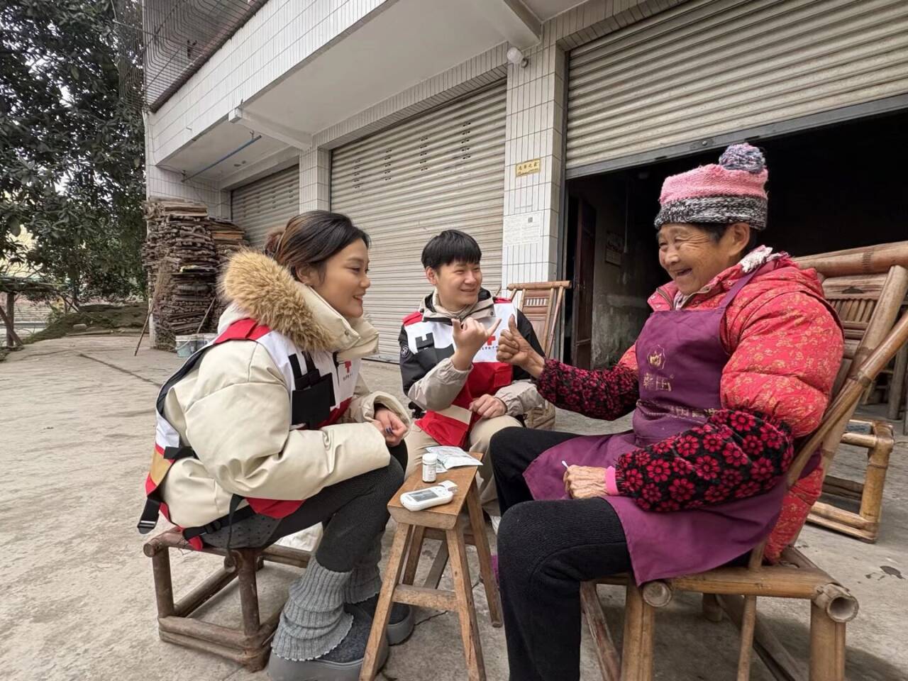 近日,重庆护理职业学院红十字会残疾人健康守护志愿服务队联合医学技术与健康管理系党总支党员志愿队,两次走进璧山区福禄镇,为当地听障老年人开展免费血糖、血压测量及健康指导服务,将专业医疗关怀送到群众“家门口”。