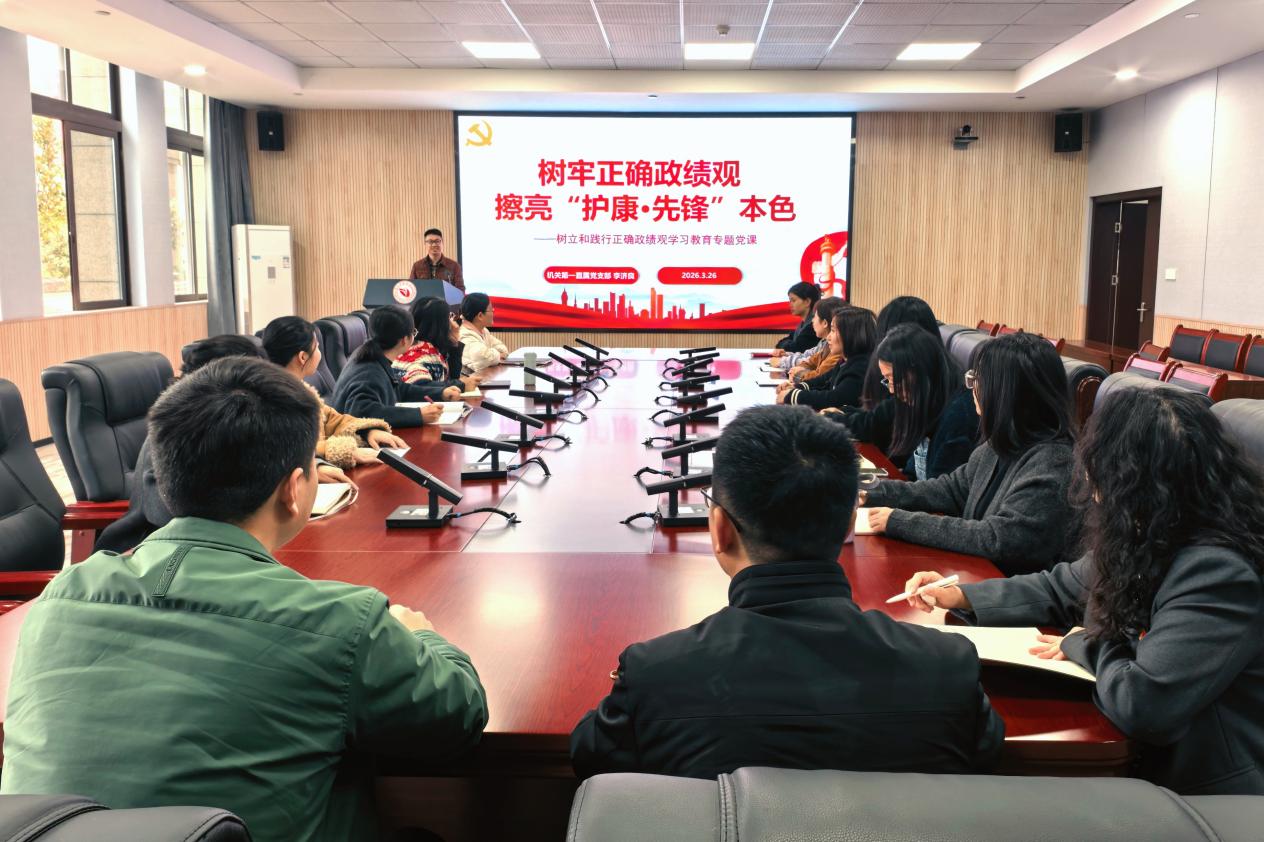 3月26日,机关第一直属党支部书记李济良以“树牢正确政绩观 擦亮‘护康·先锋’本色”为题,面向支部党员讲了一堂专题党课,邀请入党积极分子和群众共同参与。党课围绕三个层面展开:在认识意义上求“深”、在内涵理解上求“准”、在行动落实上求“实”。他谈到,党员师生应以正确政绩观引领塑造正确职业观,在工作和学习中稳“心态”、定“方向”、明“路径”、抓“关键”,努力将学习成果转化为干事创业的实际成效。