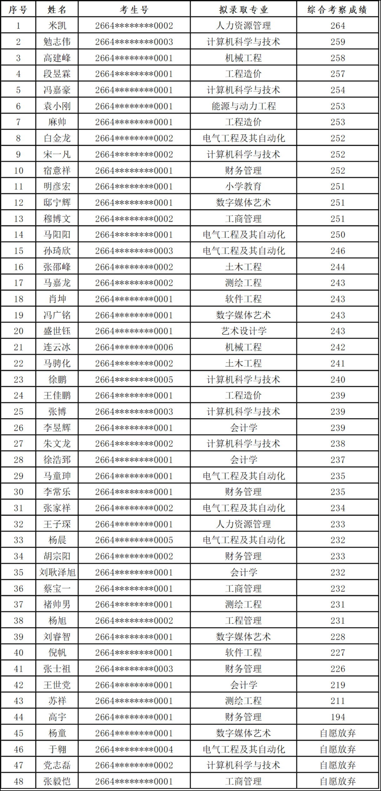 根据宁夏回族自治区教育厅、宁夏回族自治区退役军人事务厅及宁夏回族自治区人民政府征兵办公室《关于做好2022年退役大学生士兵免试普通高等教育专升本招生工作的通知》(宁教学〔2022〕34号)的相关要求,以及宁夏教育考试院《关于做好宁夏2026年普通高等教育高职(专科)升本科考试招生工作的通知》的相关要求,经考生申请、生源学校推荐、教育厅审核等环节,学校按照《银川科技学院关于开展2026年退役大学生士兵免试普通高等教育专升本综合能力考察面试的通知》相关内容,于2026年3月26日下午对符合免试录取条件的考生进行了现场面试综合考察。结合考生综合考察情况及成绩,经学校招生工作领导小组研究,确定学校最低录取资格线为190分,现对考核成绩合格的学生名单予以公示。