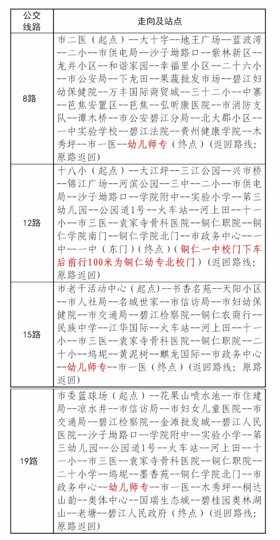 进入铜仁市中心城区碧江区后,可以选择以下公交车线路(也可乘坐出租车)到达我校(具体以公交线路运行的路线、站点为准)。