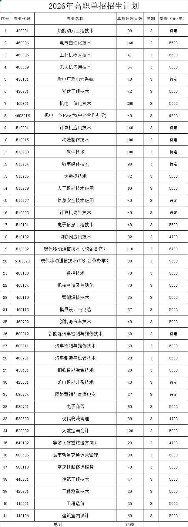 注:1.具体招生专业及计划数以吉林省教育厅批复为准。 2.待定专业学费标准以上级相关部门批复为准,上限每生每学年5500元。