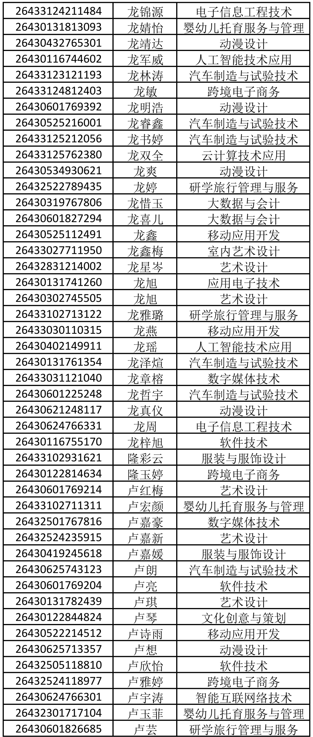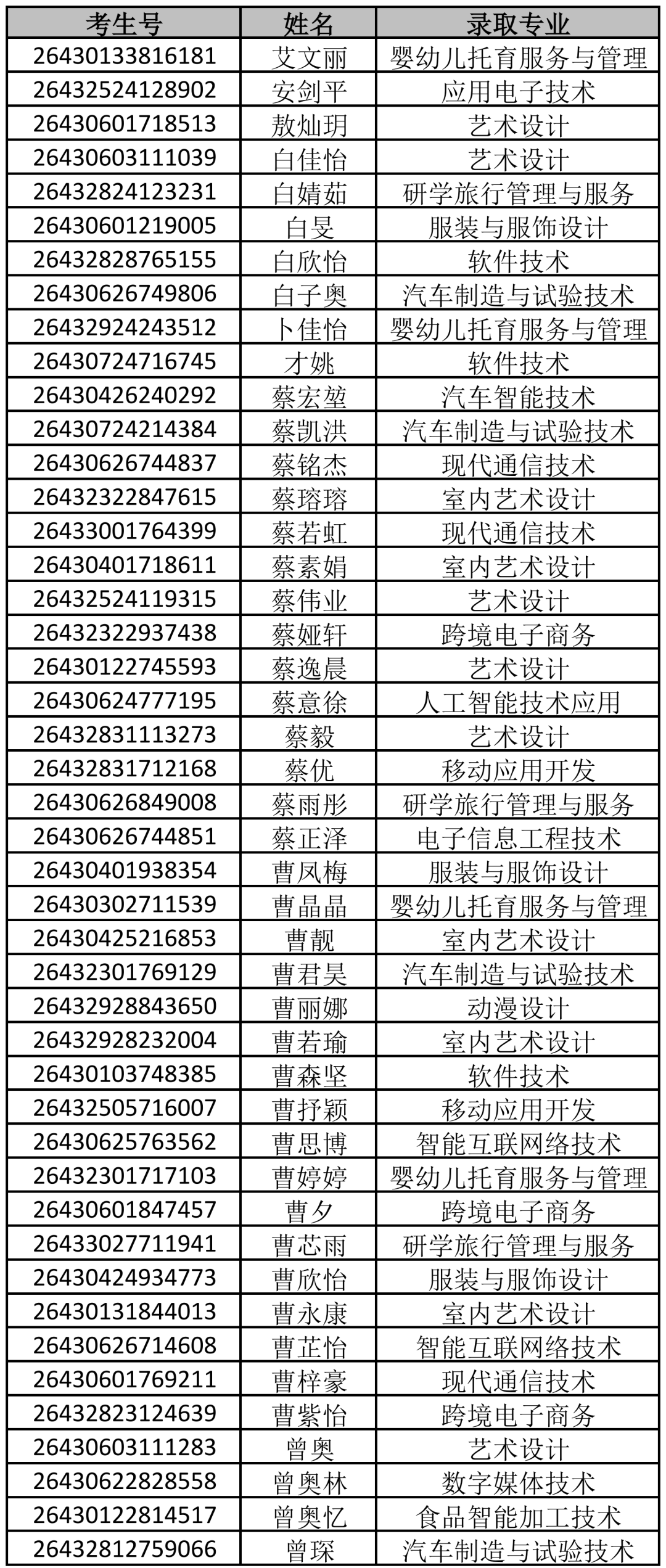 2026年单招拟录取名单公示