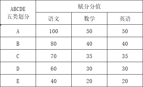 2.2022级后(包含2022级)等级为A、B、C、D、E五个等级的,赋分原则为: