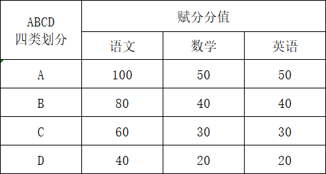 3.2022级前等级为A、B、C、D四个等级的,赋分原则为: