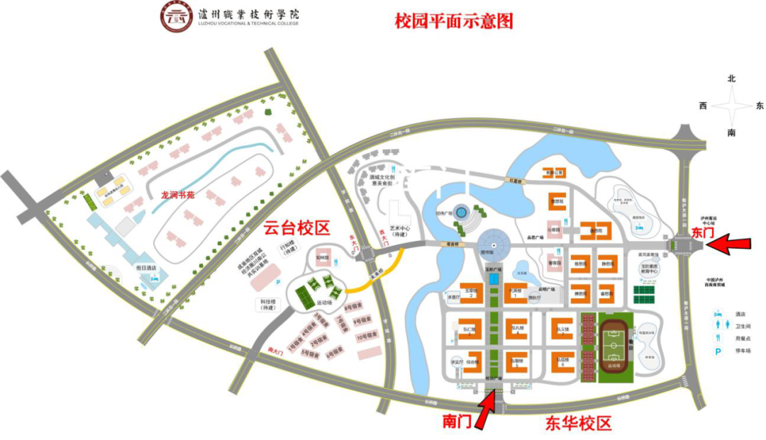 1.考生可从我校东华校区东门、南门(注意:是东华校区,不是云台校区)进入本校考点。送考车辆进校须按照学校安保人员指引,有序停放在指定区域,也可在校门外市政道路边停放,服从交警指挥。