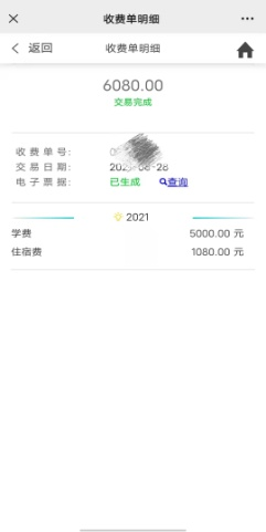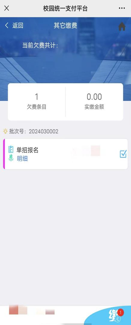 缴费完成(缴费项目一次只能勾选一个缴费)