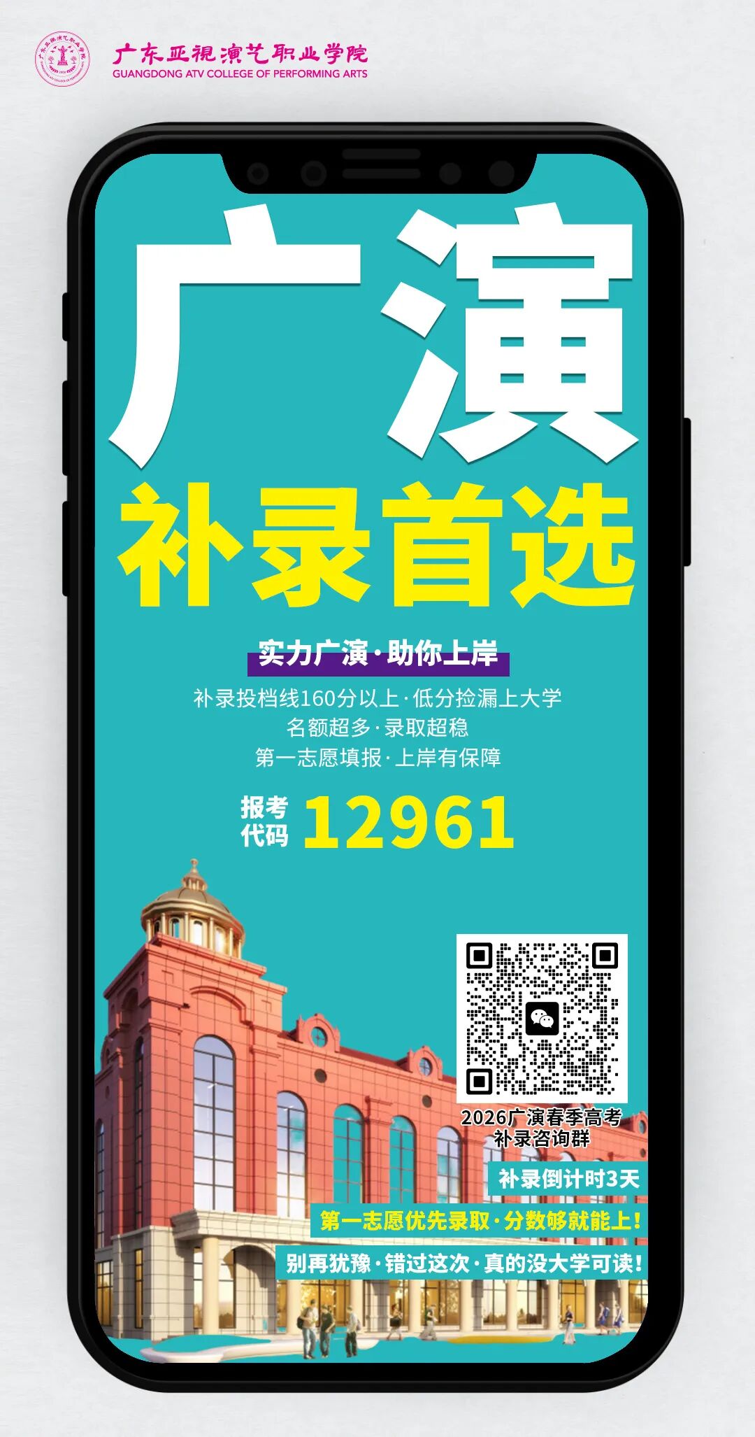 但请你千万不要放弃,更不要否定自己!广东省2026年春季高考补录,是你最后一次逆风翻盘、稳稳上岸大学的绝佳机会!广东亚视演艺职业学院早已为你备好1500余个补录征集计划,成为你求学路上最坚实的后盾!