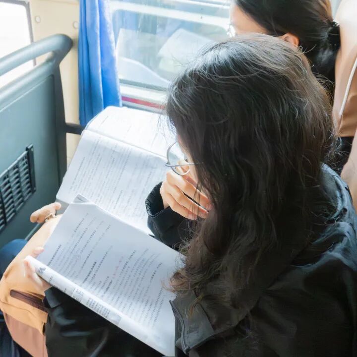 部分心怀紧张的同学也没有浮躁慌乱,静静拿出随身携带的书本与试卷,专注翻阅、静心复盘,以沉稳温习平复考前忐忑。