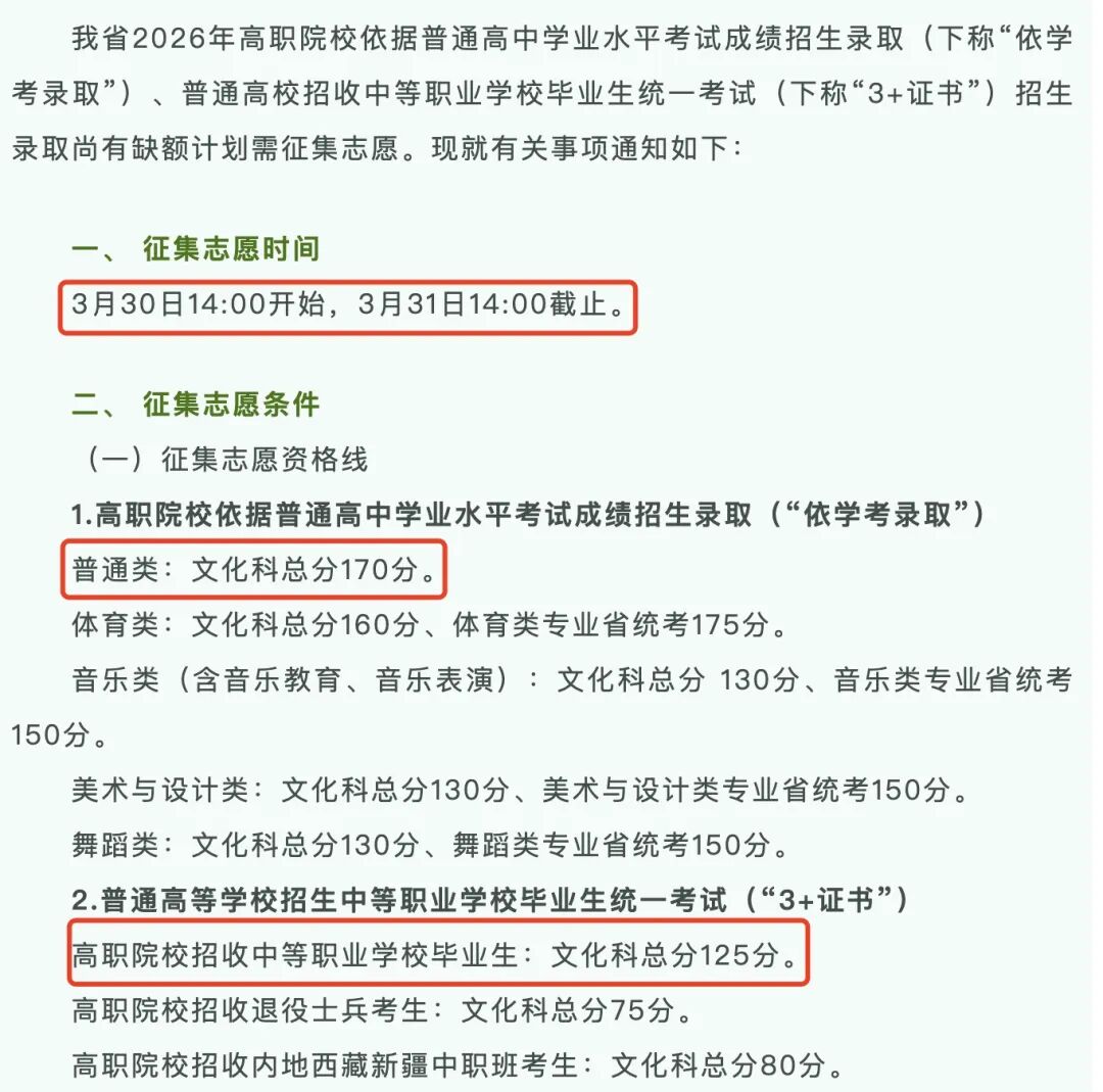 ⭐补录对象:没有填志愿/没有被录取的考生