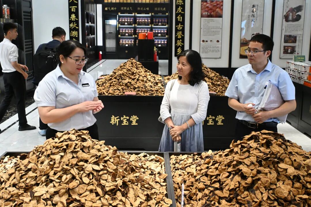 学校一行还实地参观了新宝堂的产品展示区与生产现场,近距离了解陈皮从原料到成品的加工流程与品质控制体系,对其深耕陈皮产业、坚持创新发展的企业理念表示赞赏。