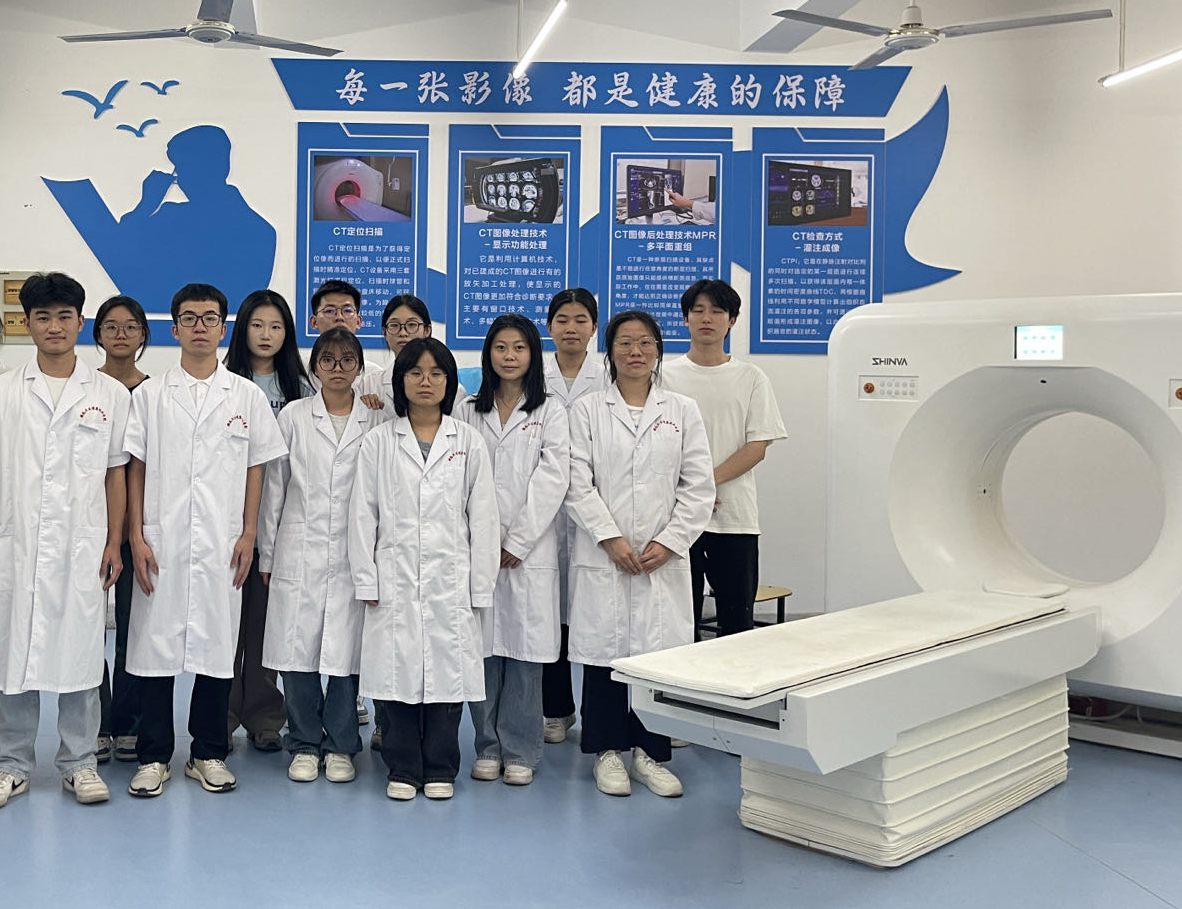 (三)实践教学:学院现有医学影像实训中心1个,内设影像技术理实一体实训室、模拟CT实训室、超声实训室、PACS电子阅片及后处理实训室、电子电工实训室、影像设备实训室、断层解剖实训室等,仪器设备达300余万元。充分利用虚拟仿真实训室开展理实一体化教学,坚持学中做、做中学,工学交替的教学模式。