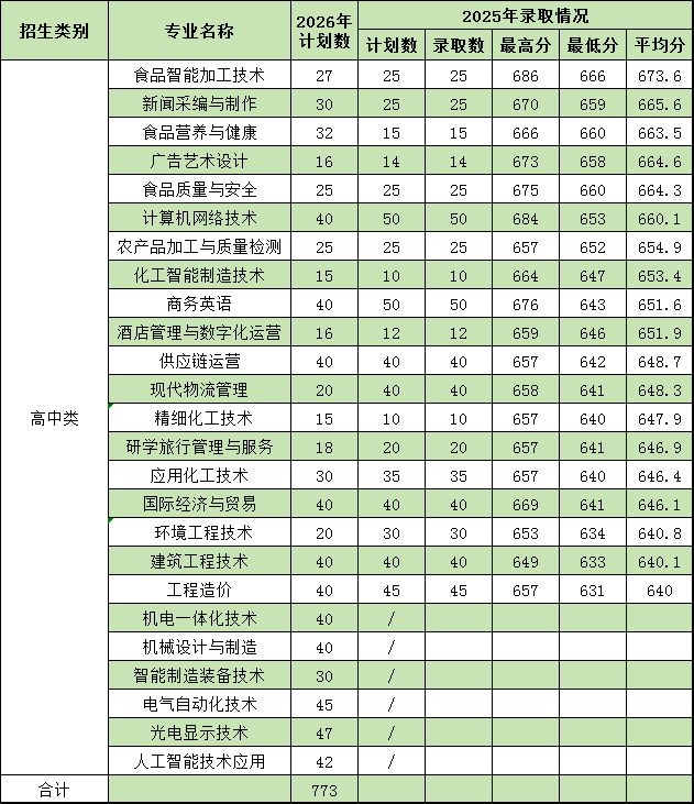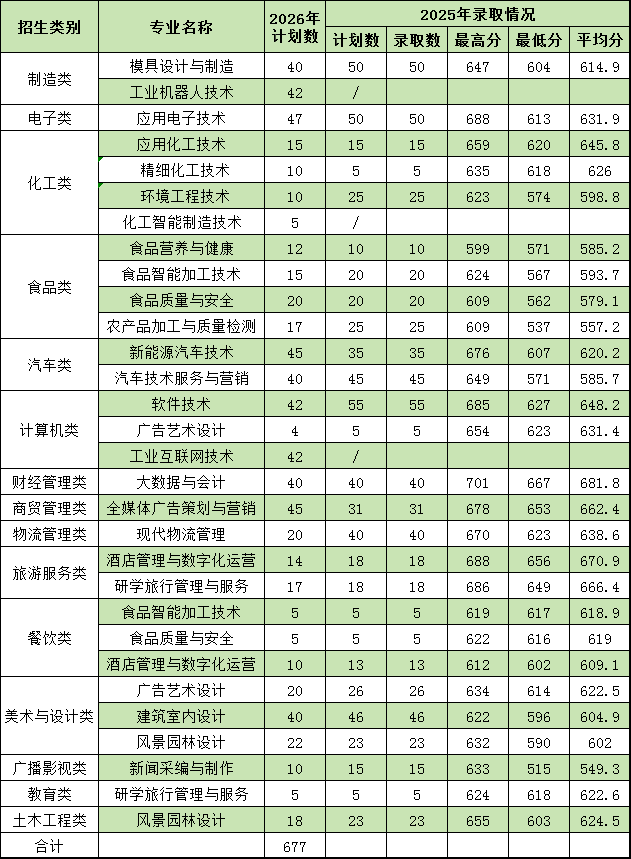 2026年学校高职分类招考总计划数1450个,其中面向高中生类773个计划,面向中职生类677个计划。志愿填报代码是4049。欢迎填报我校。