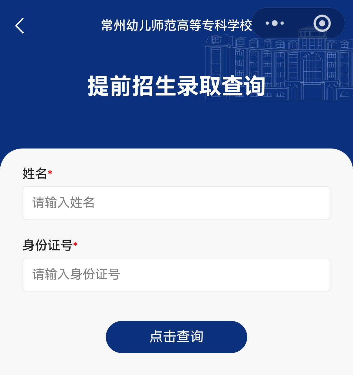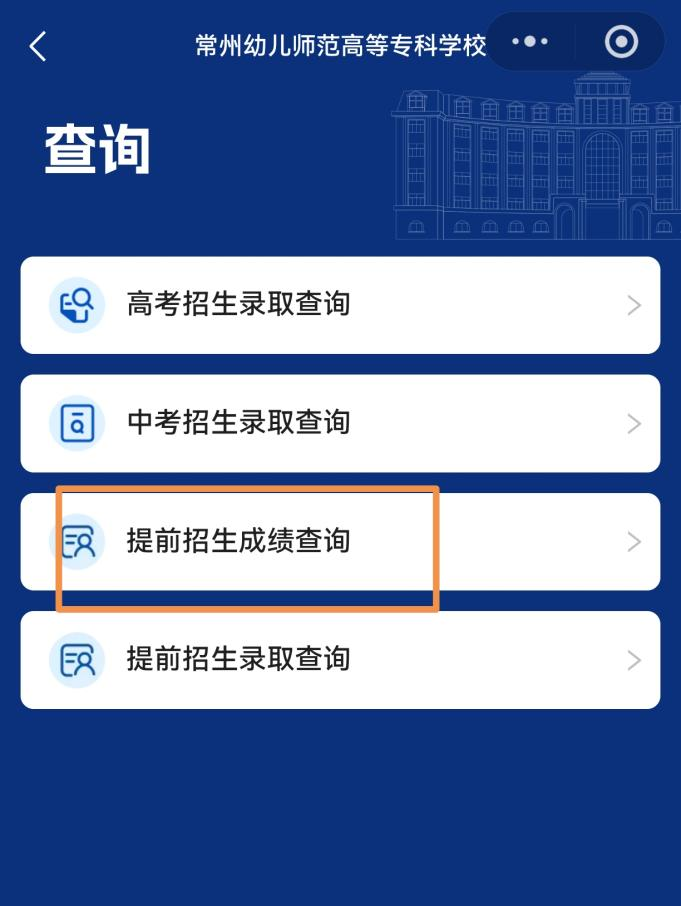 1.微信搜索栏输入“常州幼儿师范高等专科学校招生办”,找到对应小程序并点击进入;