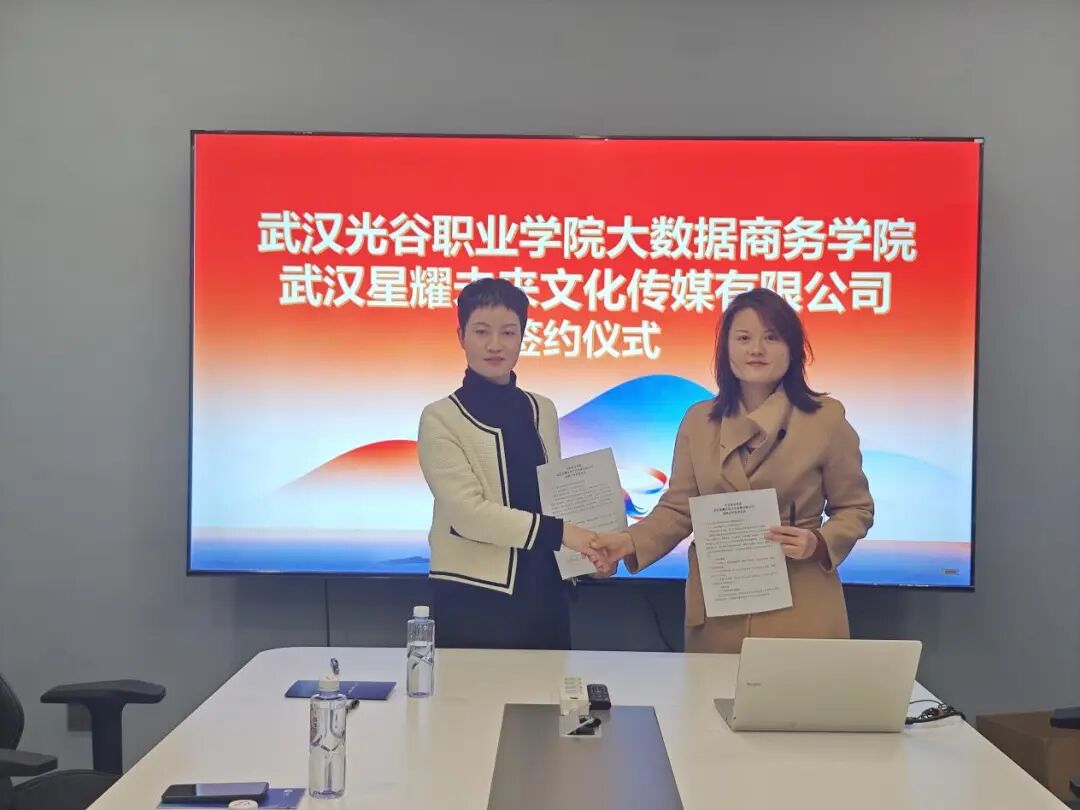 3月25日,大数据商务学院院长杨建新、副院长王圆圆一行赴武汉星耀未来文化传媒有限公司开展访企拓岗活动,双方就校企合作事宜进行深入交流,并正式签订校企合作协议。