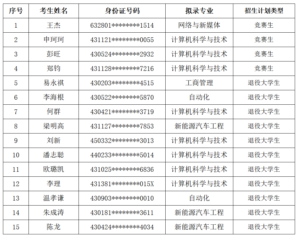 根据湖南省教育厅《关于做好2026年湖南省普通高等学校专升本考试招生工作的通知》、《湘潭理工学院2026年专升本招生章程》等文件精神,15名专升本考生参加了我校免试生资格审查和专业综合能力测试。现将拟录取名单予以公示。