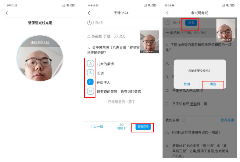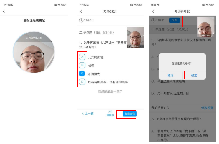2、考试全过程考生人脸须在摄像范围内(与报名相片匹配);