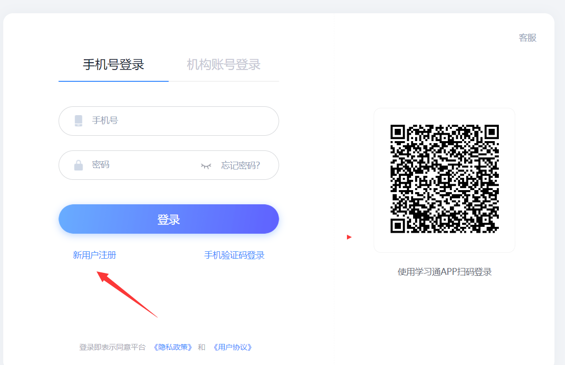 电脑端浏览器输入网址:https://zsc.fanya.chaoxing.com/portal 第一次使用平台端,点击“新用户注册”,实名注册后绑定单位和考生号,机构名称输入2182