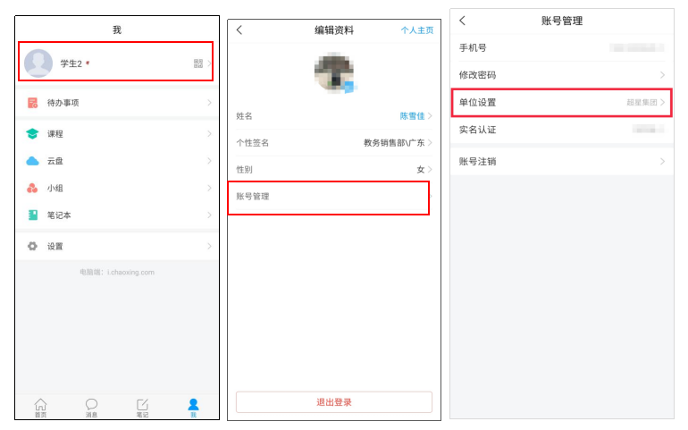登录后点击头像,进入账号管理界面,点击单位设置可绑定学校单位。