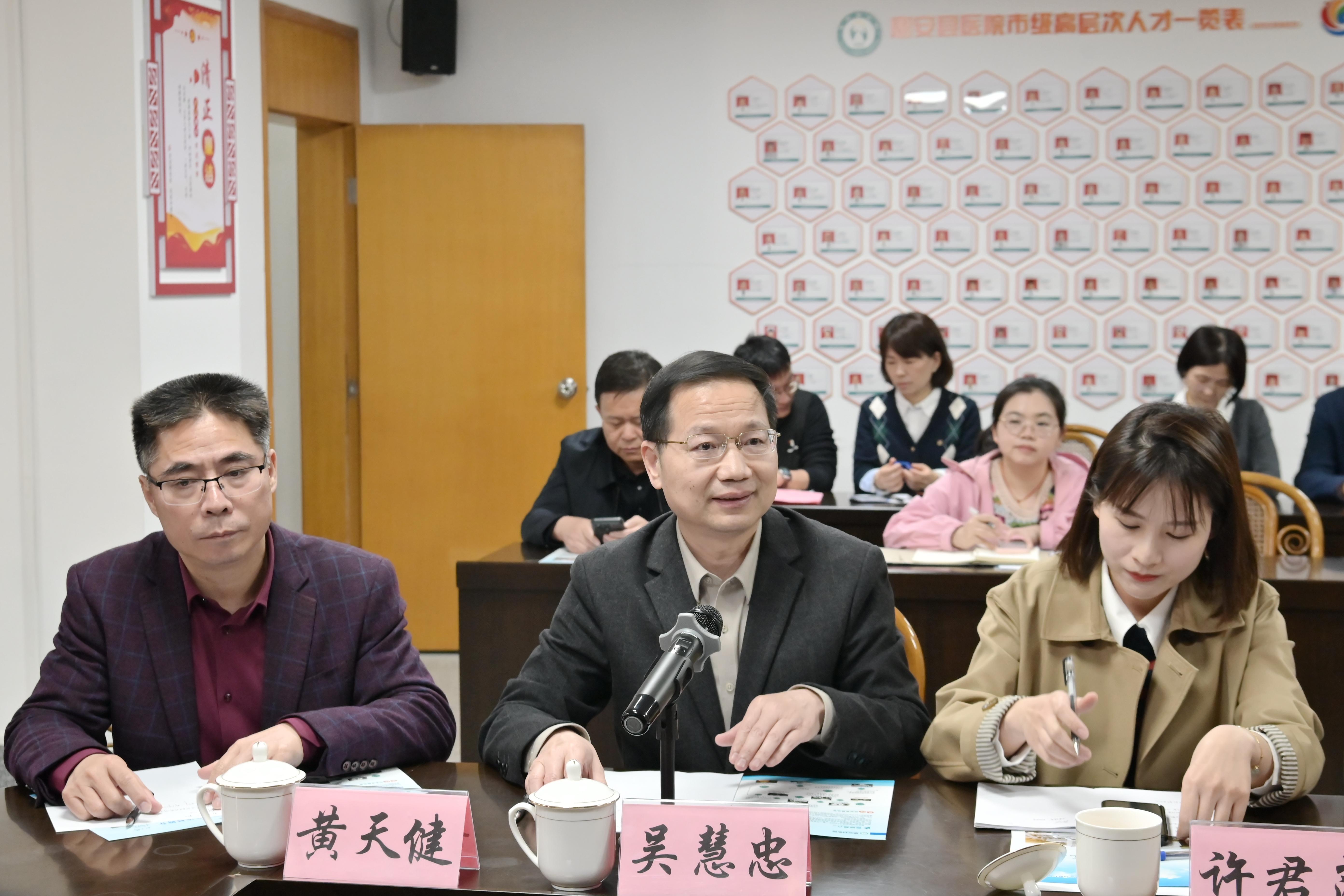 随后,校方一行前往惠安县医院,参观考察医院重点科室,并召开座谈会,会议由惠安县人社局局长杨波主持。陈剑虹副县长对我校到访表示欢迎,并详细介绍惠安县卫生健康事业、食品产业发展现状及人才需求类别。惠安县卫健局副局长欧阳炜围绕护理人才继续教育、乡医培训体系建设、全科医学及中医药人才培养等方面,提出合作建议。惠安县医院院长吴慧忠明确护理、康复、中医药等专业人才需求缺口,期盼持续深化校院合作,为区域卫生健康事业培育并输送优质专业人才。
