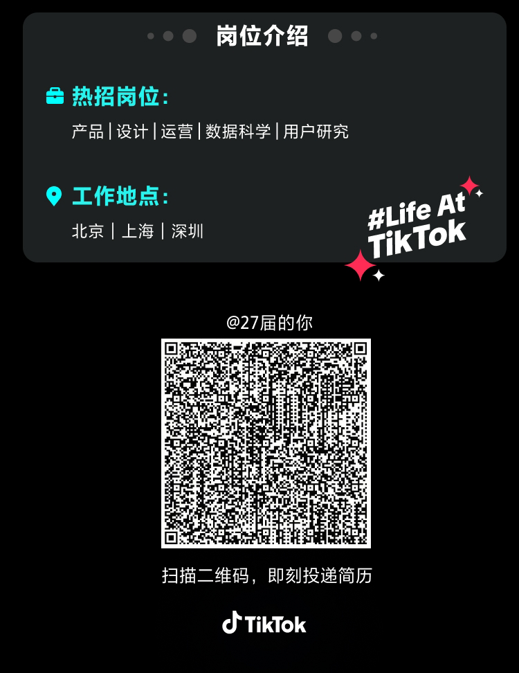 ByteIntern|TikTok 产品、运营、设计、数据科学、用户研究等实习岗邀你投递!