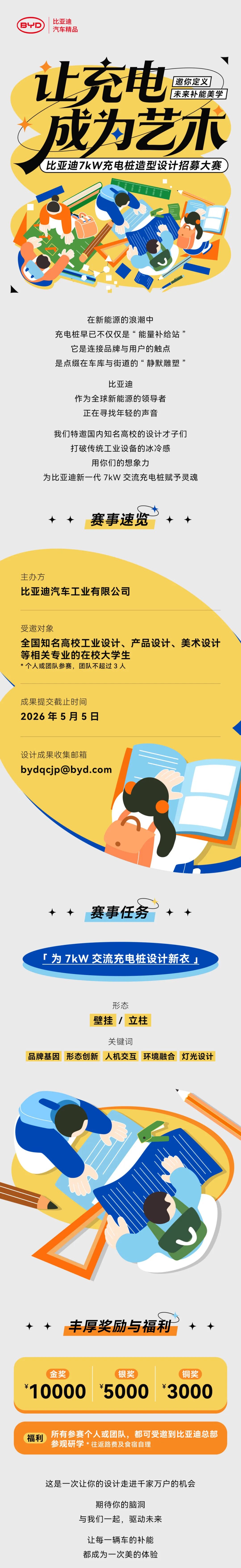 让充电成为艺术!比亚迪7kW充电桩造型设计招募大赛,邀你定义未来补能美学