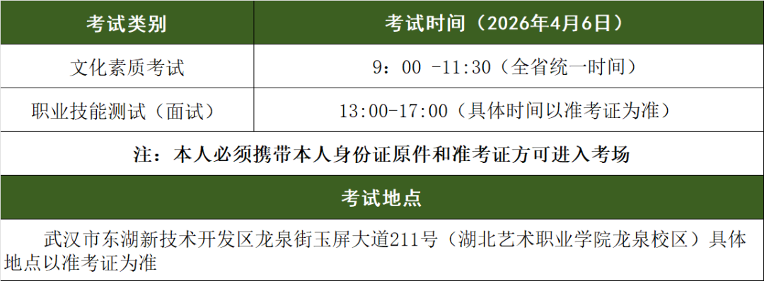我校组成考试小组,根据各招生专业考试大纲组织考试、评分,本项考试及评分受湖北省教育厅、湖北省教育考试院指导和监督。