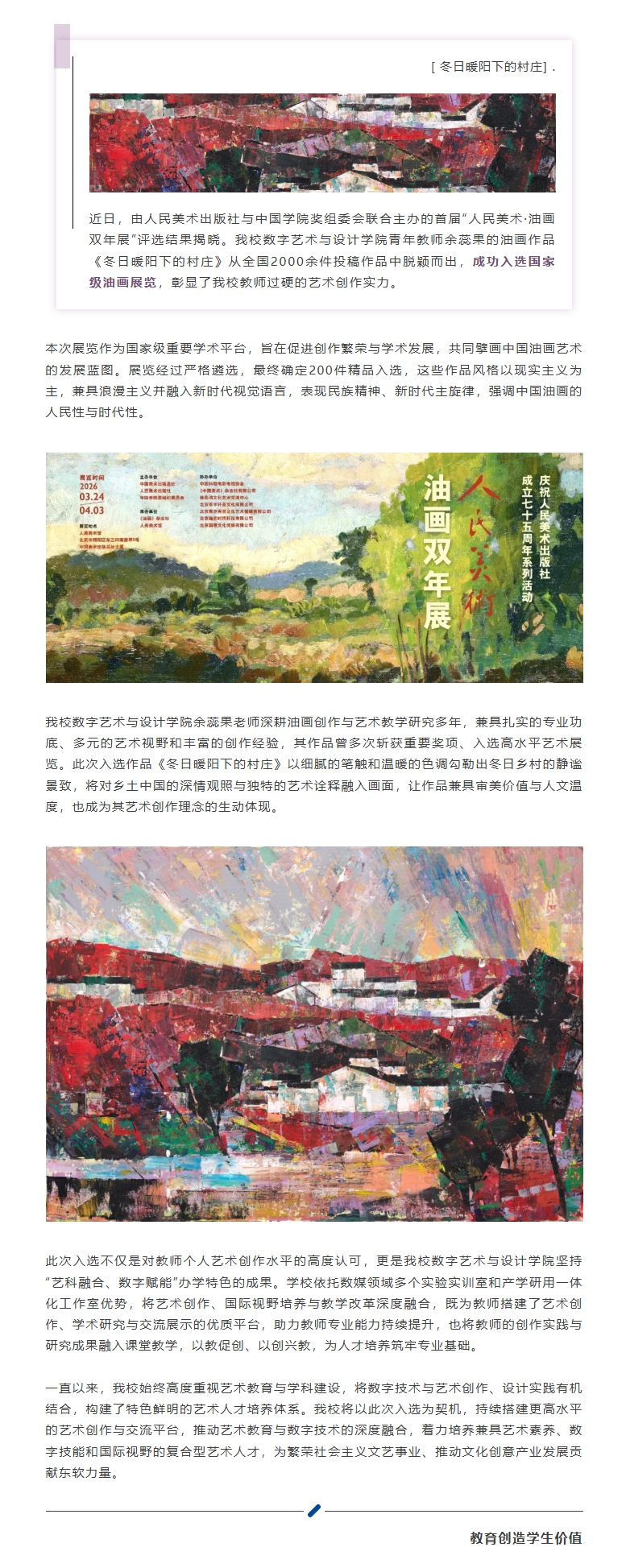 实力出圈‼️我校教师作品入选国家级油画展览