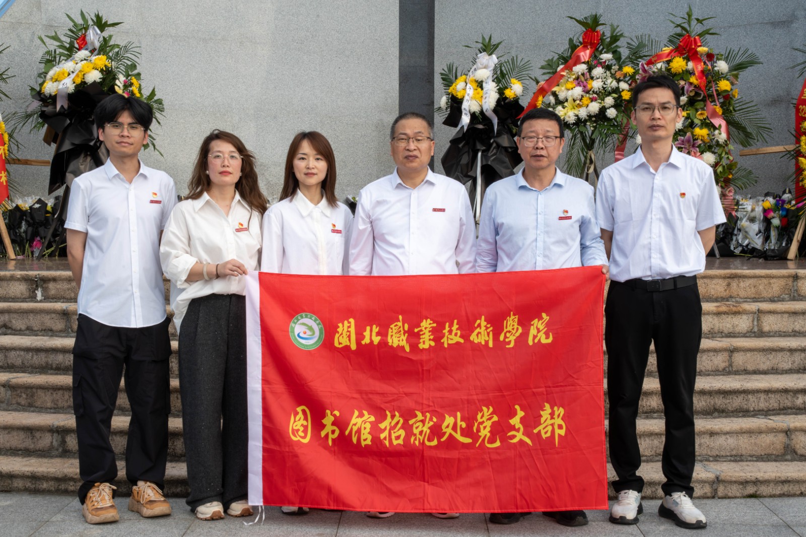 为深切缅怀革命先烈,传承和弘扬红色革命精神,进一步筑牢党员干部的理想信念,激发青年团员的爱国情怀,4月1日,图书馆招就处党支部联合马克思主义学院、团委赴九峰山烈士陵园开展 “缅怀革命先烈 传承红色基因” 主题党日活动,图书馆招就处党支部全体党员、马院、团委师生代表参加此次活动。