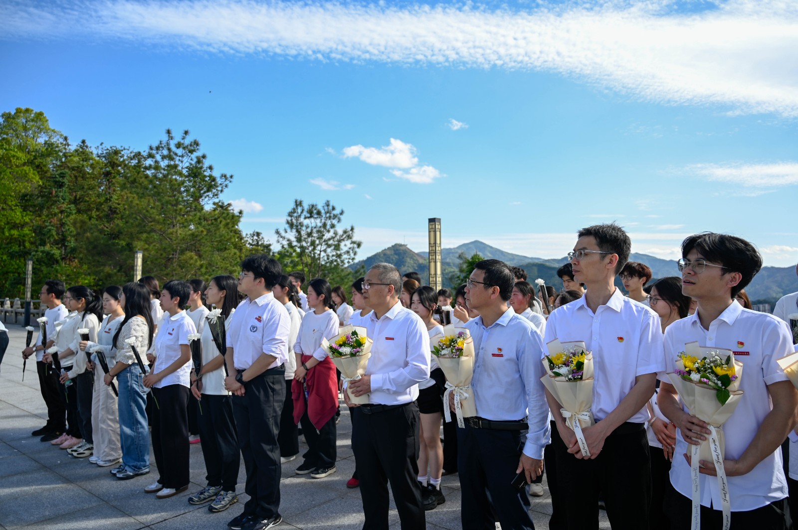 青山肃穆,英魂永存。活动在庄严的《中华人民共和国国歌》声中拉开帷幕,全体参与人员肃立注目,用嘹亮的歌声表达对祖国和先烈的敬意。随后,全体人员脱帽默哀一分钟,在静默中追思革命先烈为民族解放、国家富强抛头颅、洒热血的英勇事迹,寄托对先烈的深切哀思。