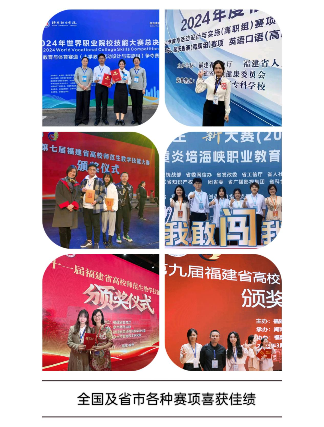 团队教科研成果斐然。完成1项中央财政支持项目,5个省级重点建设项目,1个省级教学改革综合实验项目;建有5门省级精品在线开放课程、2个省级课程思政示范项目、3门省级精品在线开放课程、2门精品课程,获省级教学成果二等奖2项、市级教学成果奖特等奖2项,多次被评为中共漳州市先进基层党组织及中共福建省先进基层党组织,获评省级“党员好故事”,入选全省高校“双带头人”教师党支部书记“强国行”专项行动团队名单。近五年,承担了27个省、市、国家级课题,并获得了6项与教育相关的专利成果。