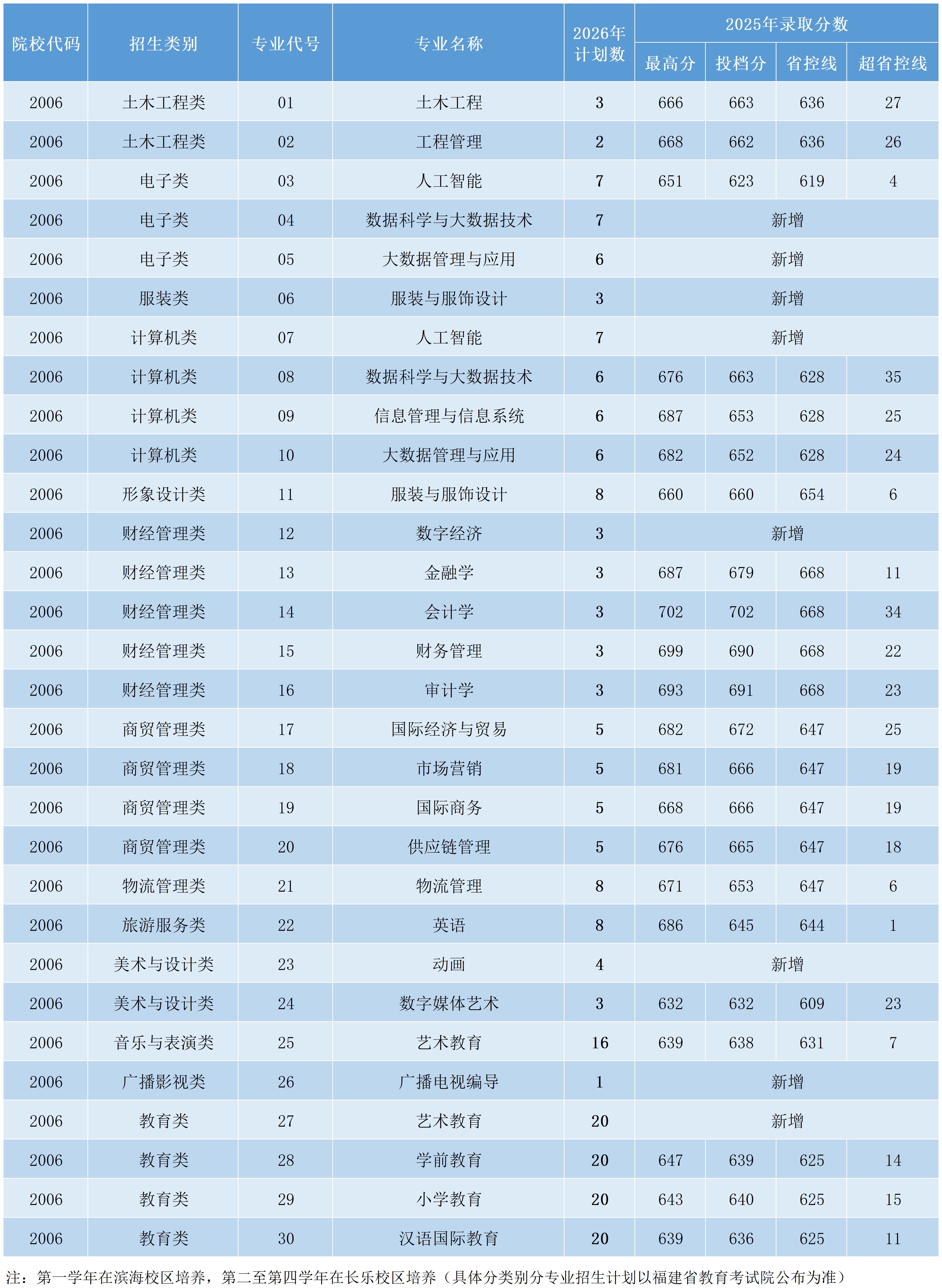 福州外语外贸学院2026年福建省高职分类考试招生计划