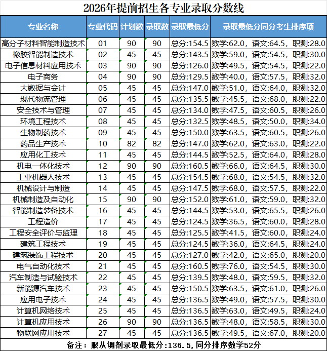 2026年提前招生各专业录取分数线