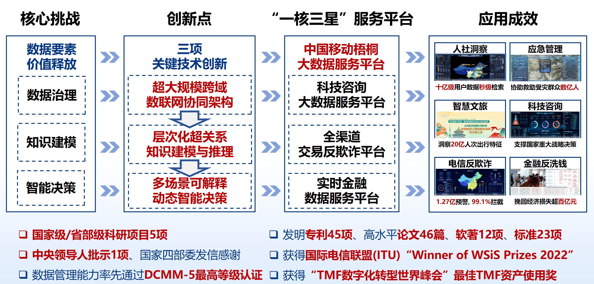 超大规模跨域数据治理驱动的智能决策服务关键技术及产业化(第一完成人:鄂海红教授)获2025年度吴文俊人工智能科学技术奖科技进步奖一等奖。该项目聚焦“数据-知识-智能”闭环,围绕三大核心技术开展攻关:通过超大规模跨域数联网协同架构解决数据处理效率瓶颈,基于层次化超关系知识建模降低垂直域知识构建成本,利用多场景可解释动态智能决策技术满足复杂应用需求。依托国家重大项目,团队历时七年协同攻关,研发了超大规模跨域数据治理驱动的智能决策服务关键技术,构建了“一核三星”数据治理与智能决策服务平台体系,建成了全球规模最大的运营商数据治理基础设施,形成了“梧桐·鸿鹄”数智赋能合作生态。在金融安全、应急管理等重大场景持续规模化应用:人社洞察智能决策服务实现全国十亿级用户精准画像,支撑央视报道70余次;应急响应智能决策服务融入国家应急管理部调度系统,救助受灾群众超亿人;反欺诈反洗钱智能决策服务累计向国家反诈中心推送有效预警数据超亿条,协助银行反洗钱案件调查百余起。成果获得国家多个部委感谢,实现数据要素的高效价值转化,为我国在全球数字经济竞争中构筑了新优势。