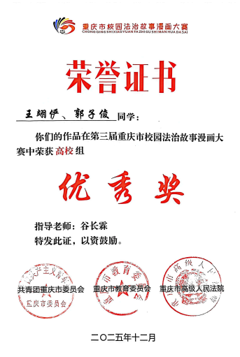 近日,由重庆市教育委员会、共青团重庆市委员会、重庆市高级人民法院联合主办的第三届重庆市校园法治故事漫画大赛公布获奖结果,思想政治教学部选送的学生法治漫画作品成功获评高校组市级奖项,实现了法治宣传与思政育人的双重成效。