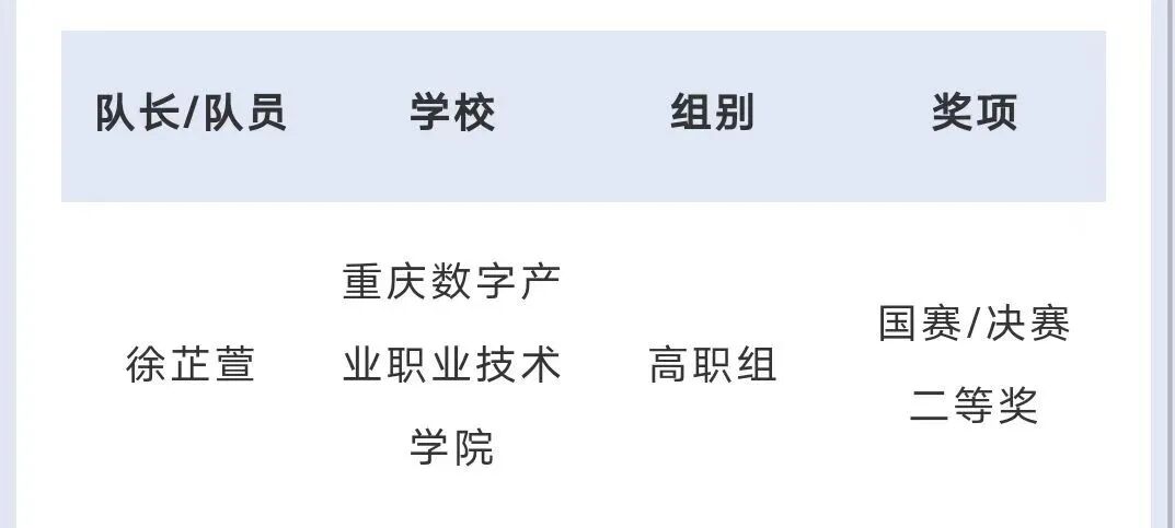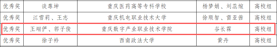 近日,重庆数字产业职业技术学院捷报频传,在国赛和市赛两项重要赛事中表现卓越,展现了学院在“德技并修、五育并举”育人理念下的扎实成效。在全国高校计算机能力挑战赛中,一名同学荣获二等奖;同时,在校园法治故事漫画大赛中,学院获得优秀奖。现将近期学院所获部分荣誉进行展示,一同领略重数学子的高光时刻……