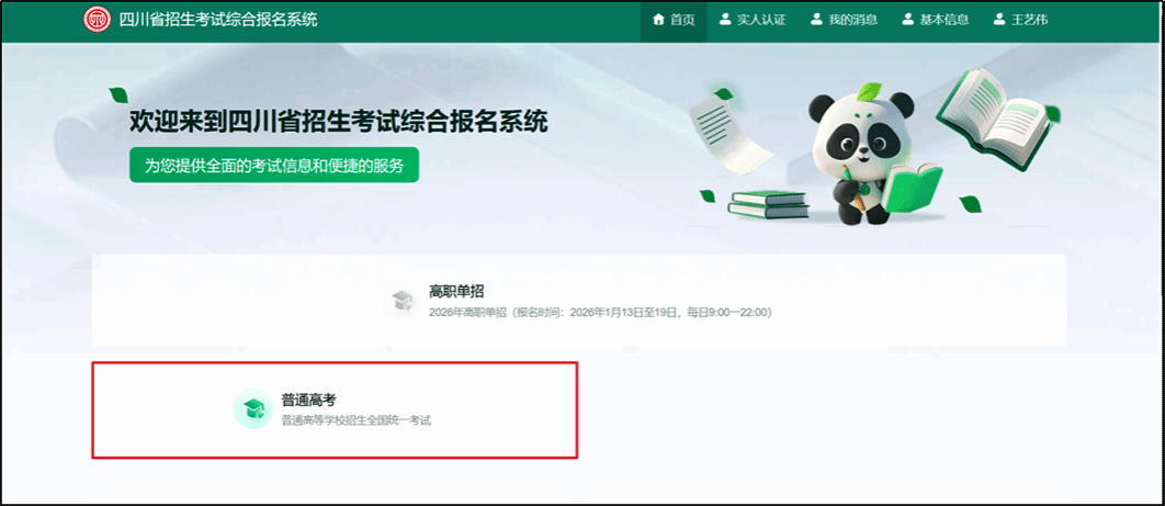 在浏览器地址栏输入“https://zhbm.sceea.cn”,进入“四川省招生考试综合报名系统”首页。