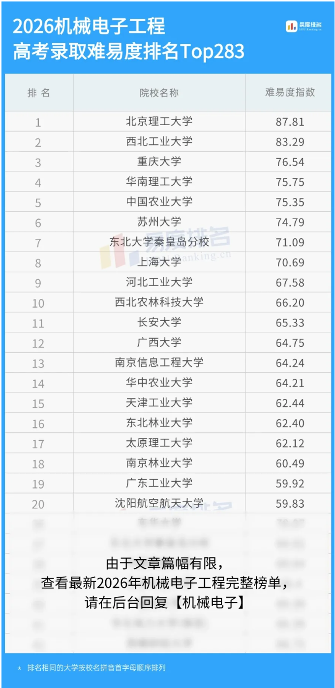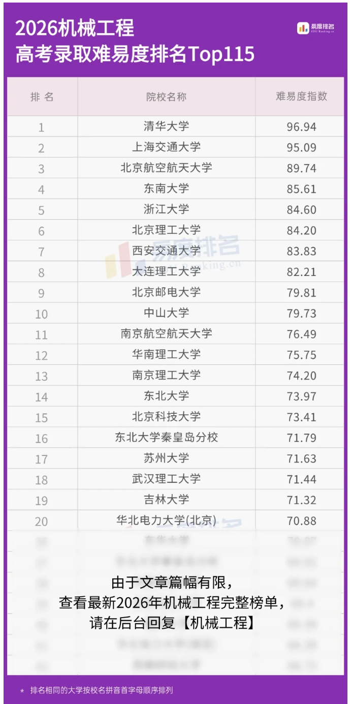在顶尖985高校,机械工程专业绝不会“高不成低不就”。这类学校的机械工程课程扎实,科研资源丰富,保研率高。更重要的是,985的平台能让学生接触到真正的“系统级研发”而非基层操作。因此,985高分考生优先考虑机械工程或机电,把平台价值吃干榨净,后期走研发或管理路线。