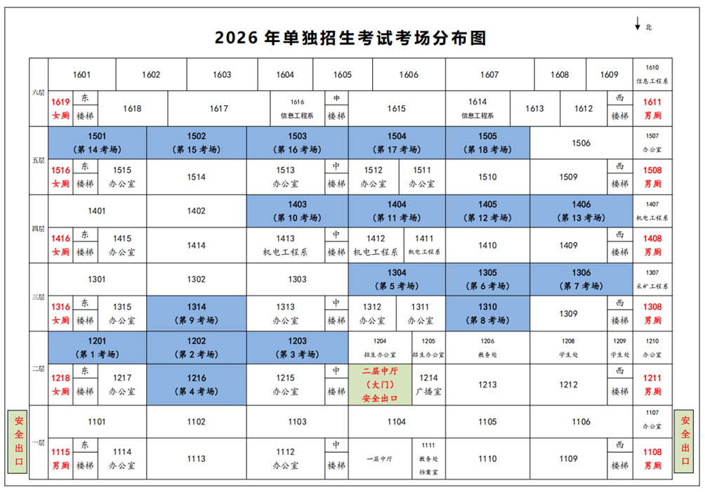 考场设在一号教学楼(正对大门),《2026年单独招生考试考场安排示意图》(见附件)。