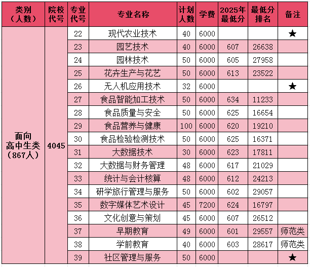 2025年各专业录取最低分