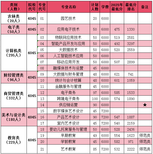 带★为新增专业 备注:最终招生计划以福建省教育考试院公布为准。